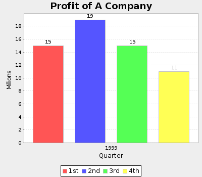 What was the average quarter profit in millions during 1999? 14. All the customers to the restaurant ordered either hamburgers or fries or both in some day. 78 customers ordered hamburgers, 39 ordered fries, and 36 ordered both. What was the total number of customers in the day to the restaurant? 15. If 8 × = 10, what is the value of 150 × ? 16. If 4m = 8, what is the value of 8m − 6? 17. M is a set of numbers whose median is 4. N is a set that is generated by tripling each number in M. What is the median of the numbers in set N? 18. After a holiday season, a department store gave a 40% discount on the suits which were less than $60, while gave a 45% discount on the suits which were $60 or more. What is the price (in dollars) after discount if a suit was $15 originally? 19. The average age of 6 people is 21. None of them are younger than 11 years old. How old is the oldest possible age in the group? 20. How many two-digit numbers are there in which the tens digit is less than the ones digit? |