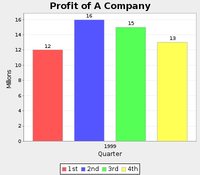 What was the average quarter profit in millions during 1999? 14. All the customers to the restaurant ordered either hamburgers or fries or both in some day. 55 customers ordered hamburgers, 42 ordered fries, and 13 ordered both. What was the total number of customers in the day to the restaurant? 15. If 5 × = 8, what is the value of 120 × ? 16. If 4m = 7, what is the value of 8m − 9? 17. M is a set of numbers whose median is 5. N is a set that is generated by tripling each number in M. What is the median of the numbers in set N? 18. After a holiday season, a department store gave a 40% discount on the suits which were less than $100, while gave a 45% discount on the suits which were $100 or more. What is the price (in dollars) after discount if a suit was $90 originally? 19. The average age of 5 people is 27. None of them are younger than 14 years old. How old is the oldest possible age in the group? 20. How many two-digit numbers are there in which the tens digit is greater than the ones digit? |